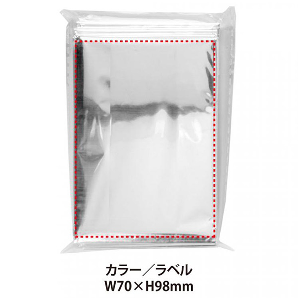 ラベルを封入できる外ポケット付きパッケージだから、オリジナルラベルによる名入れも可能です。また、名刺を入れてご挨拶粗品にすることもおすすめです。
