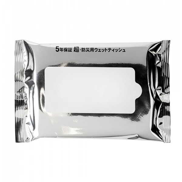 除菌効果の高いウェットティッシュを採用しており、パッケージには防湿性の高いアルミ蒸着フィルムを使用しているので、製造から5年間の安定した品質保証をいたします。
